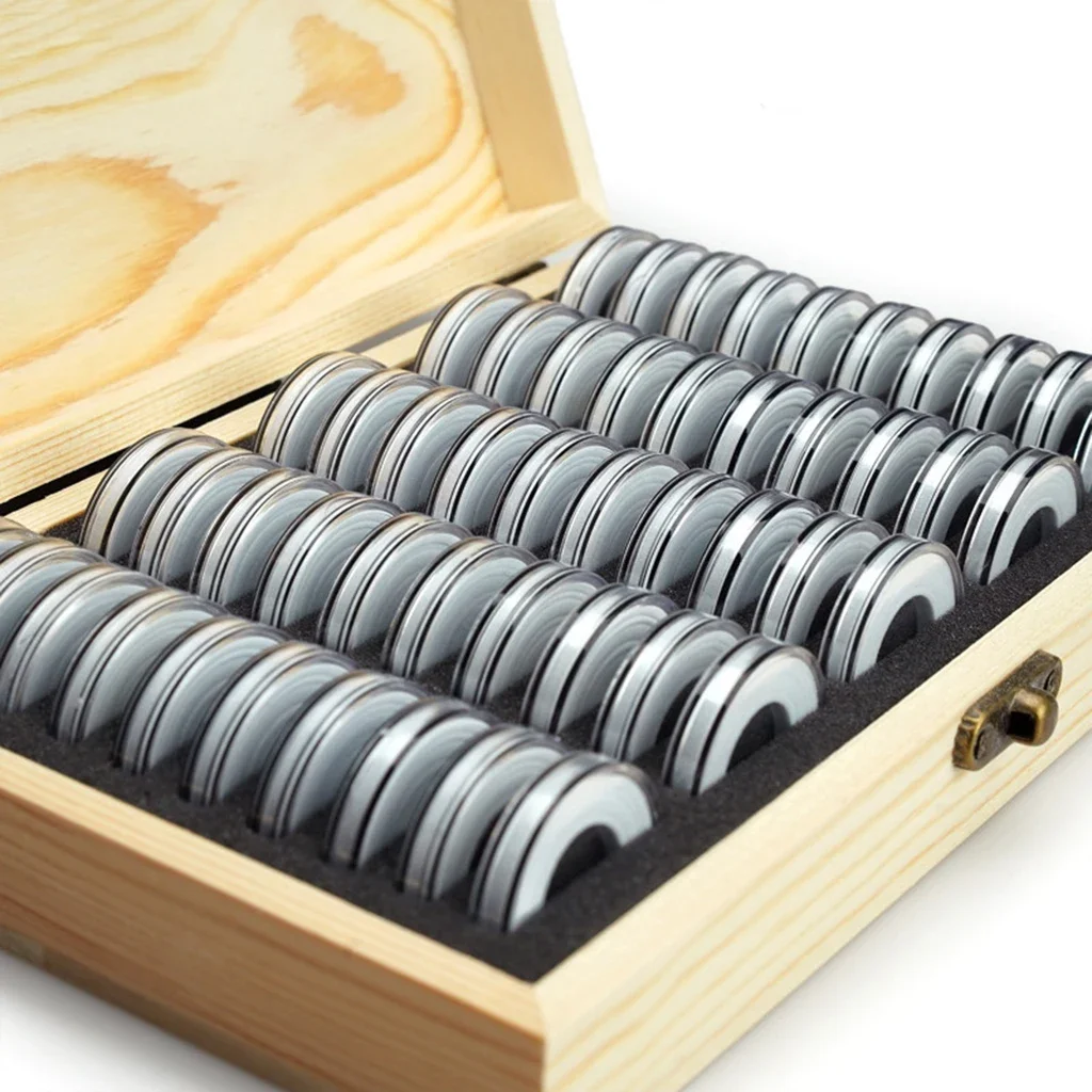 Com cápsulas de diâmetro interno de 30 mm, esta caixa oferece flexibilidade para armazenar desde as menores até peças maiores, graças aos aros ajustáveis que vêm nas medidas 18 mm, 21 mm, 25 mm, 27 mm e 30 mm. Você poderá manter suas moedas protegidas contra poeira, umidade e riscos de manuseio, garantindo a conservação impecável das suas peças valiosas. Além disso, o design das cápsulas e dos aros adaptáveis proporciona um encaixe perfeito para cada moeda, evitando deslocamentos indesejados dentro das cápsulas.